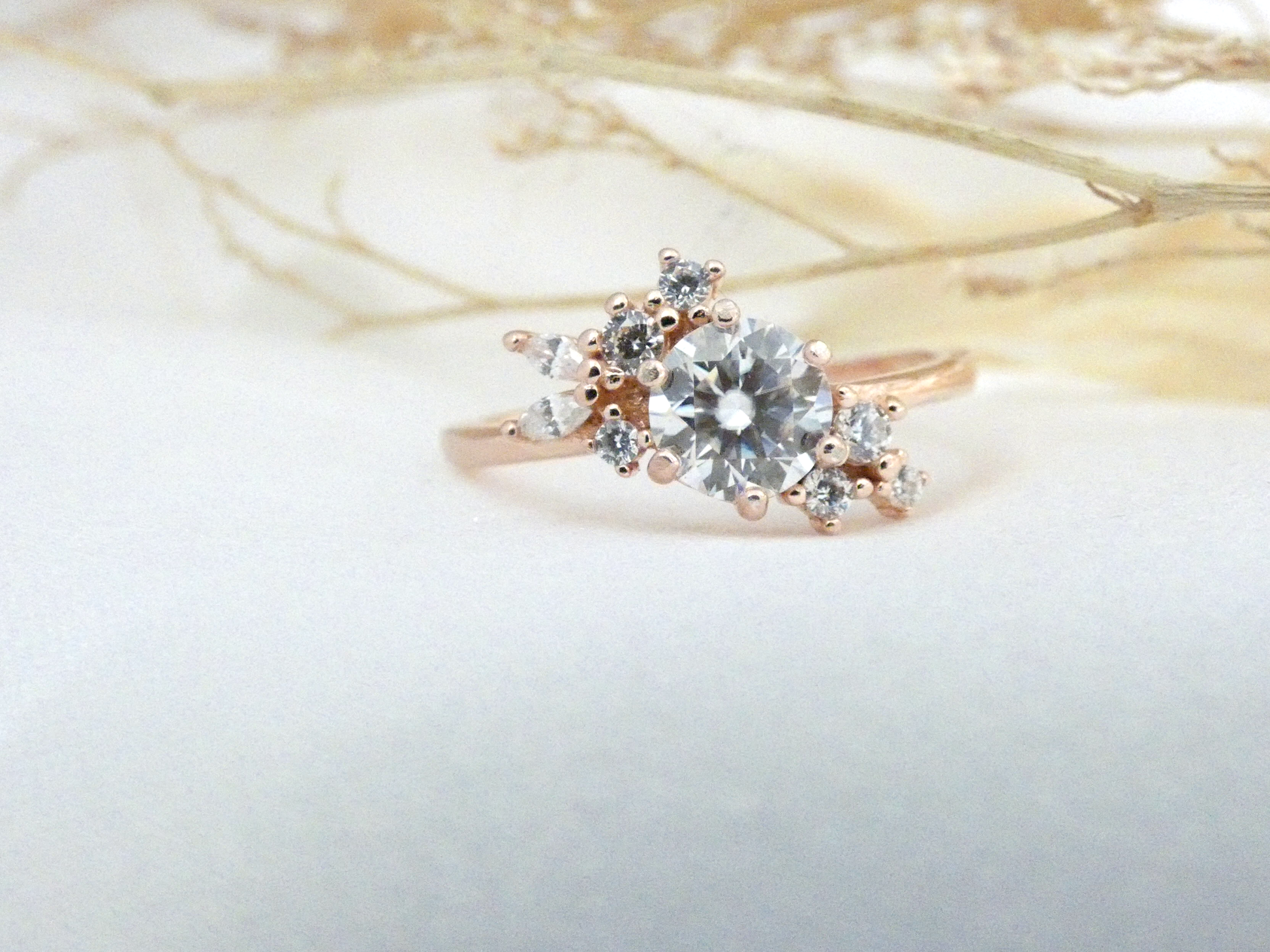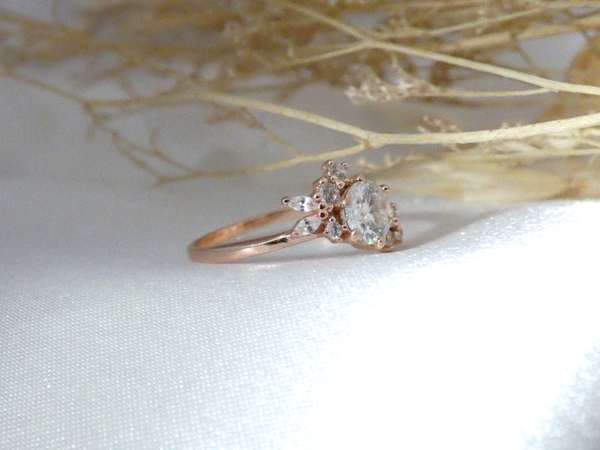 Bague de fiançailles en vermeille (argent recouvert d'or 18 carat) et surmonté d'une belle Moissanite .
