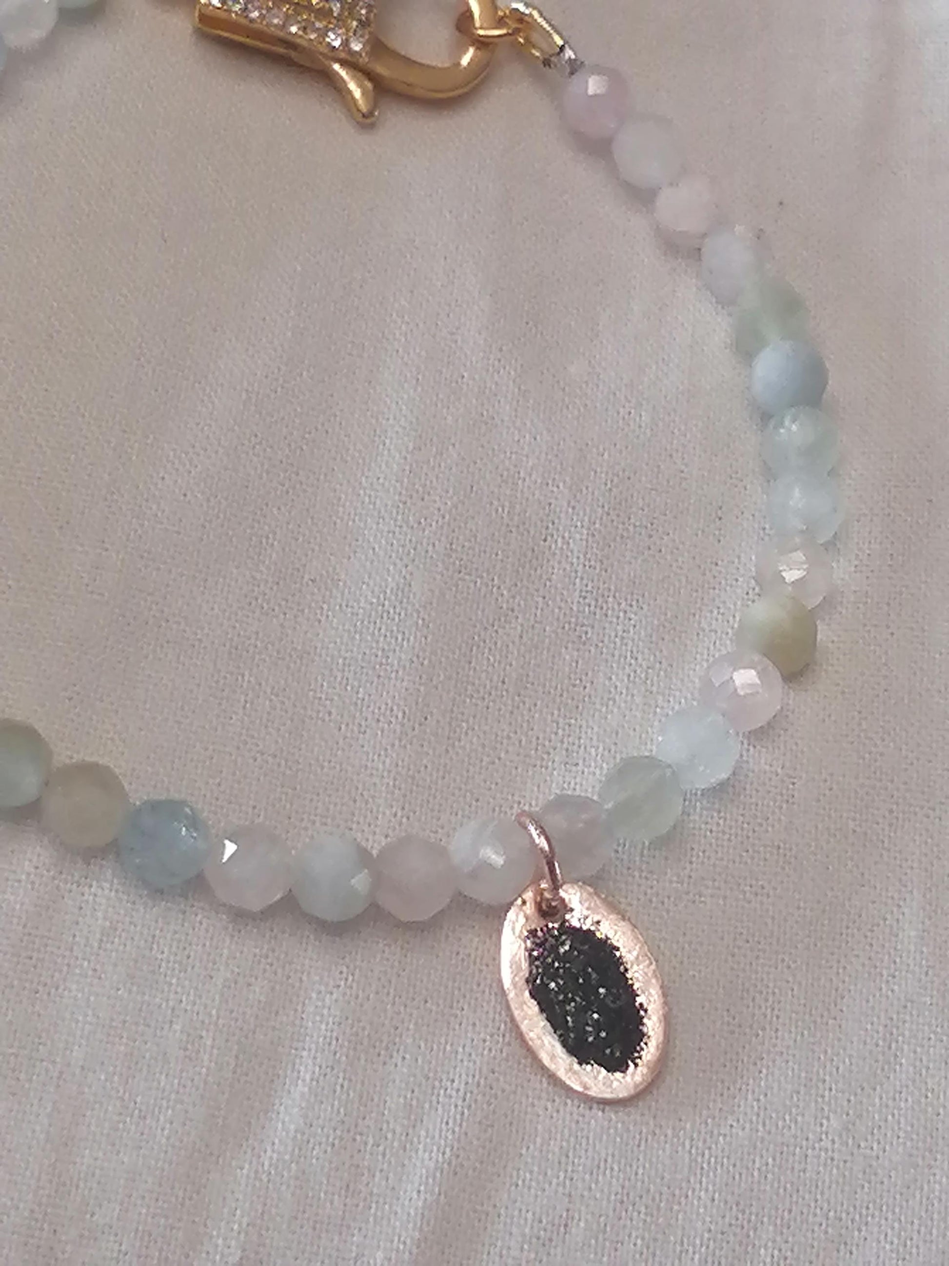 Bracelet en pierre fine "Béryl" fermoir en plaqué or et zirconium