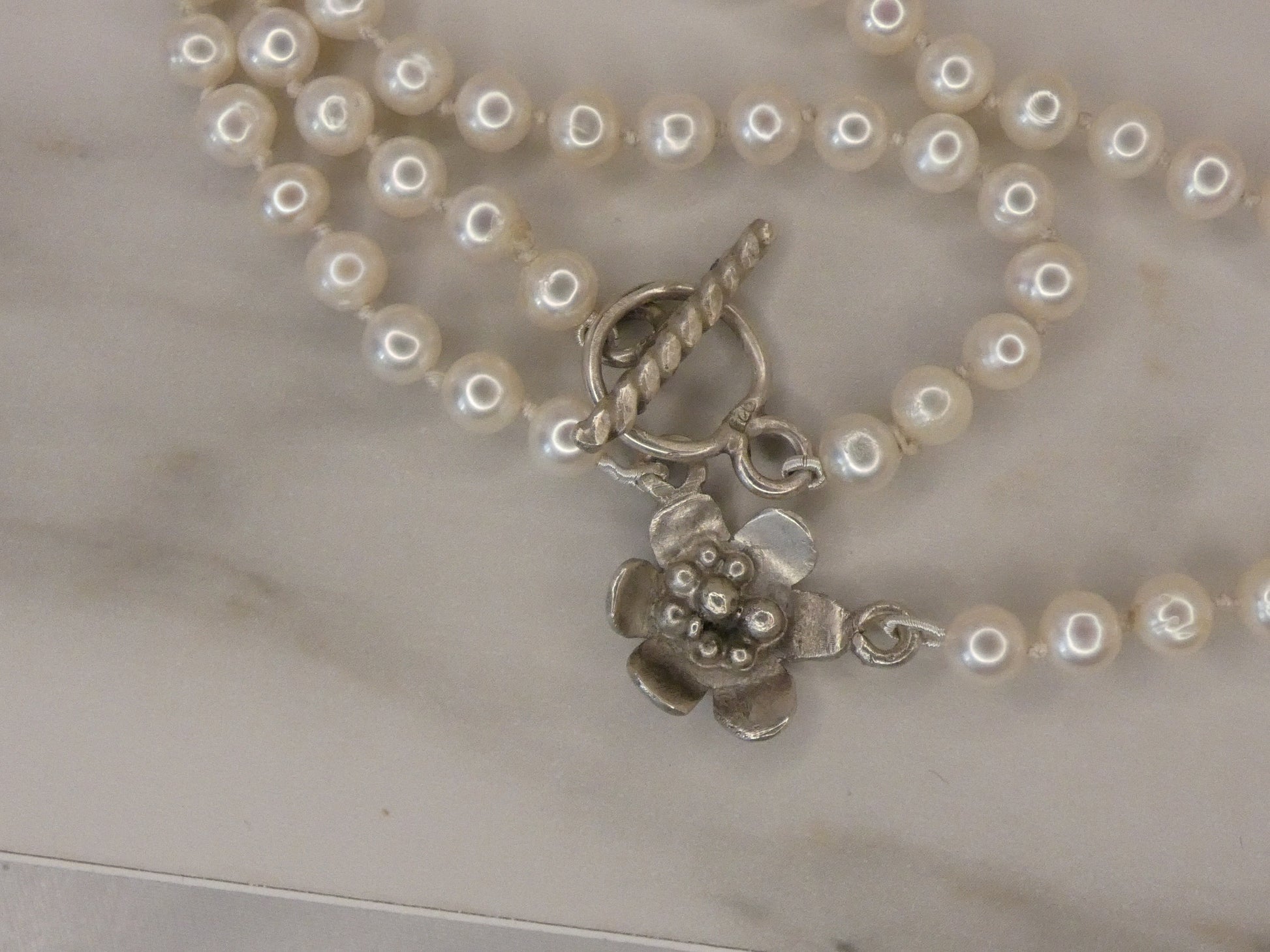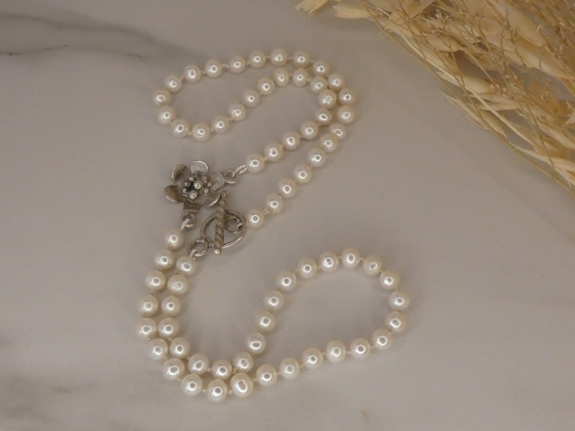 Collier de perle d'eau douce blanche 5mm avec fermoir fleur